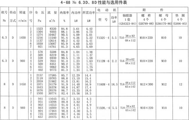 機號為2.8~5的4-68型風機主要由葉輪、機殼、進風口等直聯(lián)電機的分布部件組成。 NO6.3~20號除上述部分外還有傳動部分。